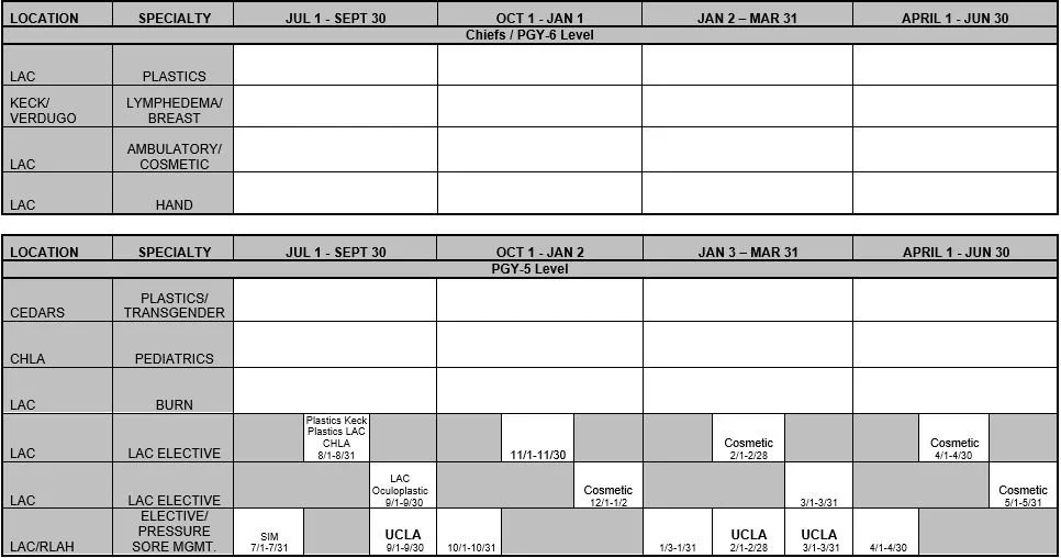 Residents will be given learning objectives for each clinical rotation. They will be assigned relevant editions of Selected Readings in Plastic Surgery during each rotation. Residents will be responsible for completing the reading during the rotation and will compile a list of 10 questions from their reading for discussion with faculty during these months. Once an appointment is made with the attending physician, this time and date along with a copy of the questions should be e-mailed to Erica Luong.